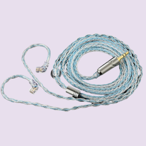 1 x QKZ T1 Silver & Blue Upgrade Cable – For KZ & QKZ In-Ear Monitors – C Pin